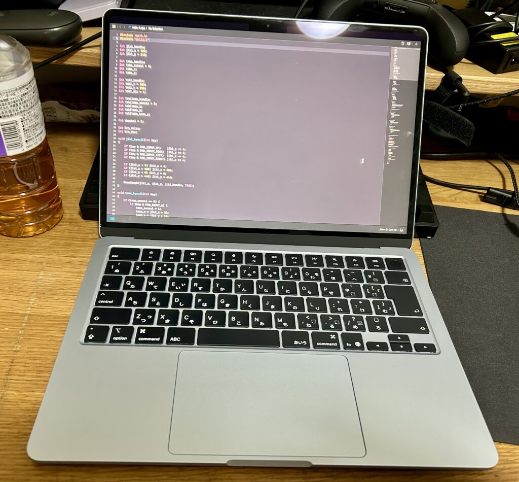 ↓実際にMacでコードを書いているところ、コンパイルなどはWindowsで実行する